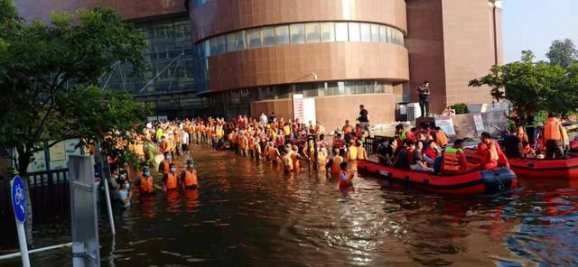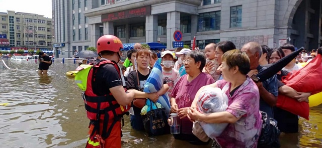 26日早上7点,救援队接到协助新乡医学院第一附属医院人员转移的任务。那里的患者、家属、医务人员及实习生多达几千人,危重病人从病房到医院门口排起了长龙,还有多名孕妇、产妇和刚出生的婴儿。水位在继续上涨,深处已齐腰,每个人都非常焦急,患者及家属情绪尤为激动,场面很混乱。