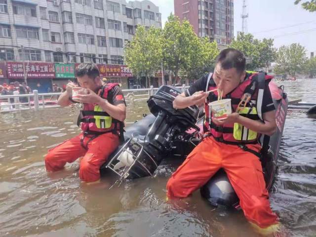 15:50接到在卫辉市前线救援的友队电话,卫辉市卫州路、建设路等片区急需支援。他们迅速整理好装备16点火速赶往卫辉市卫州路转移群众,从17点到22点共转移群众100余人。因为夜晚搜救风险非常高,考虑到群众转移过程中的安全问题,加之所带的手电筒电量也全部用完,对当地地形不熟悉,搜救任务无法继续进行,他们在卫辉市检察院门口志愿者服务点简单吃了一碗捞面,于23点撤至20多公里以外的官屯幼儿园临时安置点休整。
