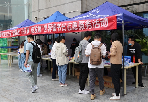 为了进一步推介图书馆的文献资源,让师生更好地利用好图书馆的各类资源,在第27个“世界读书日”到来之际,图书馆在一期图书馆门前组织开展“送服务 办实事 促发展”世界读书日志愿服务活动。