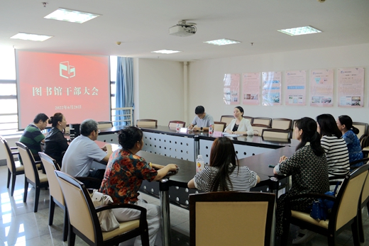 6月28日下午,图书馆在10楼会议室召开干部会,学校党委组织部副部长张凤一行2人到图书馆宣布干部的任免决定。图书馆领导班子成员、科级以上干部、教研室负责人参加了会议。