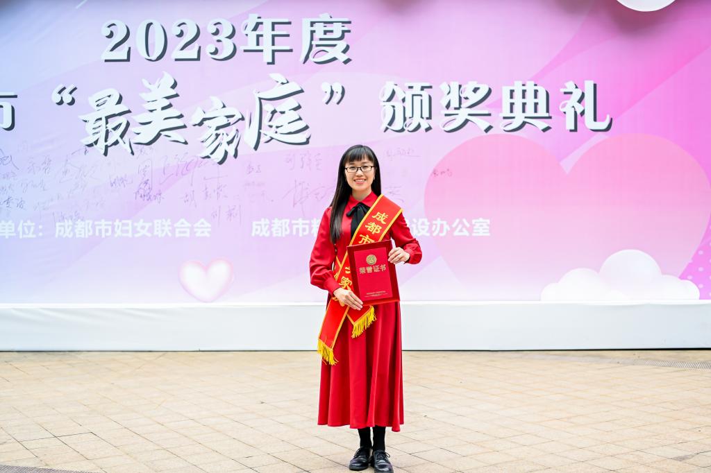 近日,成都市妇联、市文明办发布了《关于表扬2023年度成都市“最美家庭”的通报》,图书馆职工王秀家庭获得2023年度成都市“最美家庭”殊荣,并参加了在市妇儿中心剧场举办的颁奖典礼。