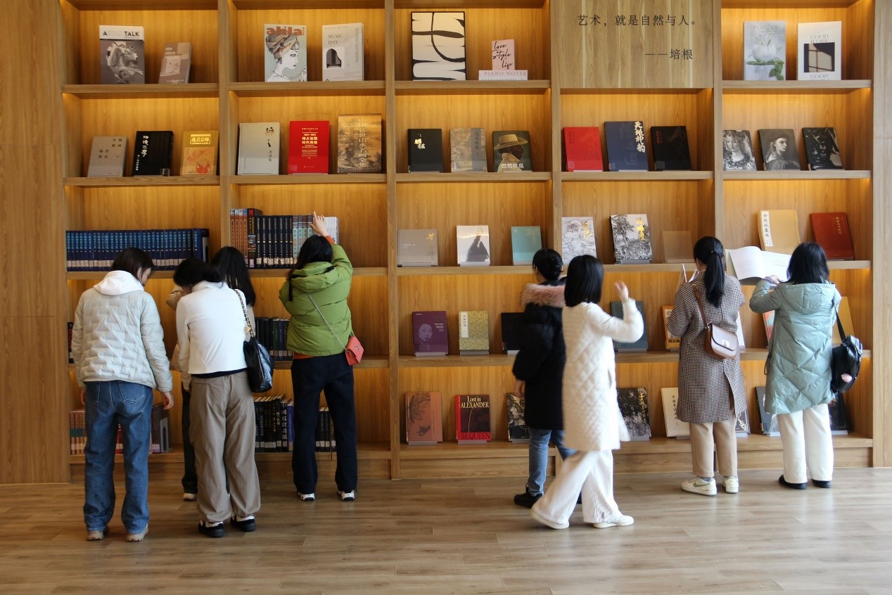 首站,女职工们来到成都大学图书馆艺术分馆,这座集艺术文献典藏、创意空间展示、学术交流于一体的特色场馆,以独特的艺术策展理念呈现文化空间美学。大家穿梭于艺术典籍与当代设计交织的空间中,感受传统艺术在现代建筑中的创新表达。