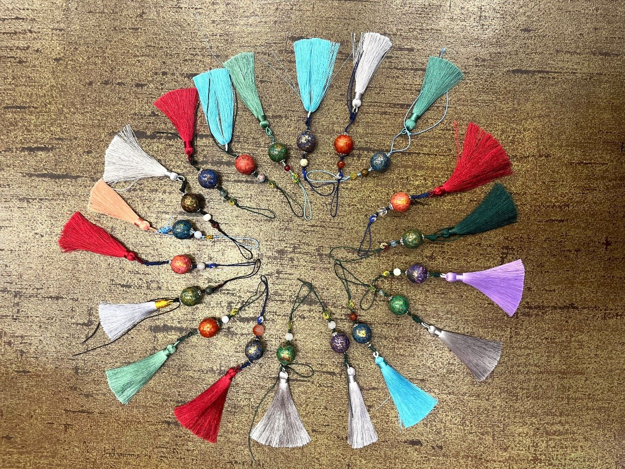 漆艺工坊,女职工们开启了一场跨越八千年的文化对话,了解了大漆的使用在中国已有八千年历史,成都是中国漆艺最早的发源地之一,每棵漆树在其生命周期内仅能产出10公斤生漆,因此有“百里千刀一斤漆”这样的说法。在非遗传承人的指导下,女职工们化身“当代女工匠”,将经过“髹漆”工艺的漆珠耐心的打磨、塑形、抛光、清洗,漆珠逐渐绽放出独一无二的光彩。有的漆珠被打磨出神鸟的图案、有的呈现出鸳鸯的图案、还有的呈现出结界兽的图案。当最后一道推光工序完成,原本黯淡的漆珠在掌心流转出星辰般的光泽。