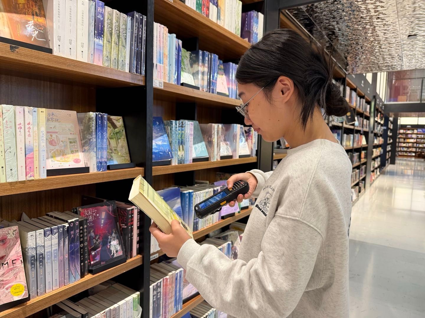 本次活动变“图书馆配”为“读者海选”,让资源建设更接地气。图书馆工作人员一路陪同同学们,耐心解答疑问,记录荐购信息,并与采选队伍就图书质量、学校师生阅读喜好、主干学科图书需求等进行深入交流。同学们精心挑选了与我校专业设置、学科发展密切相关的各学科新书及综合类新书,涵盖文学、科教、技术、党建、考研等各类图书,最终现采图书4500册。