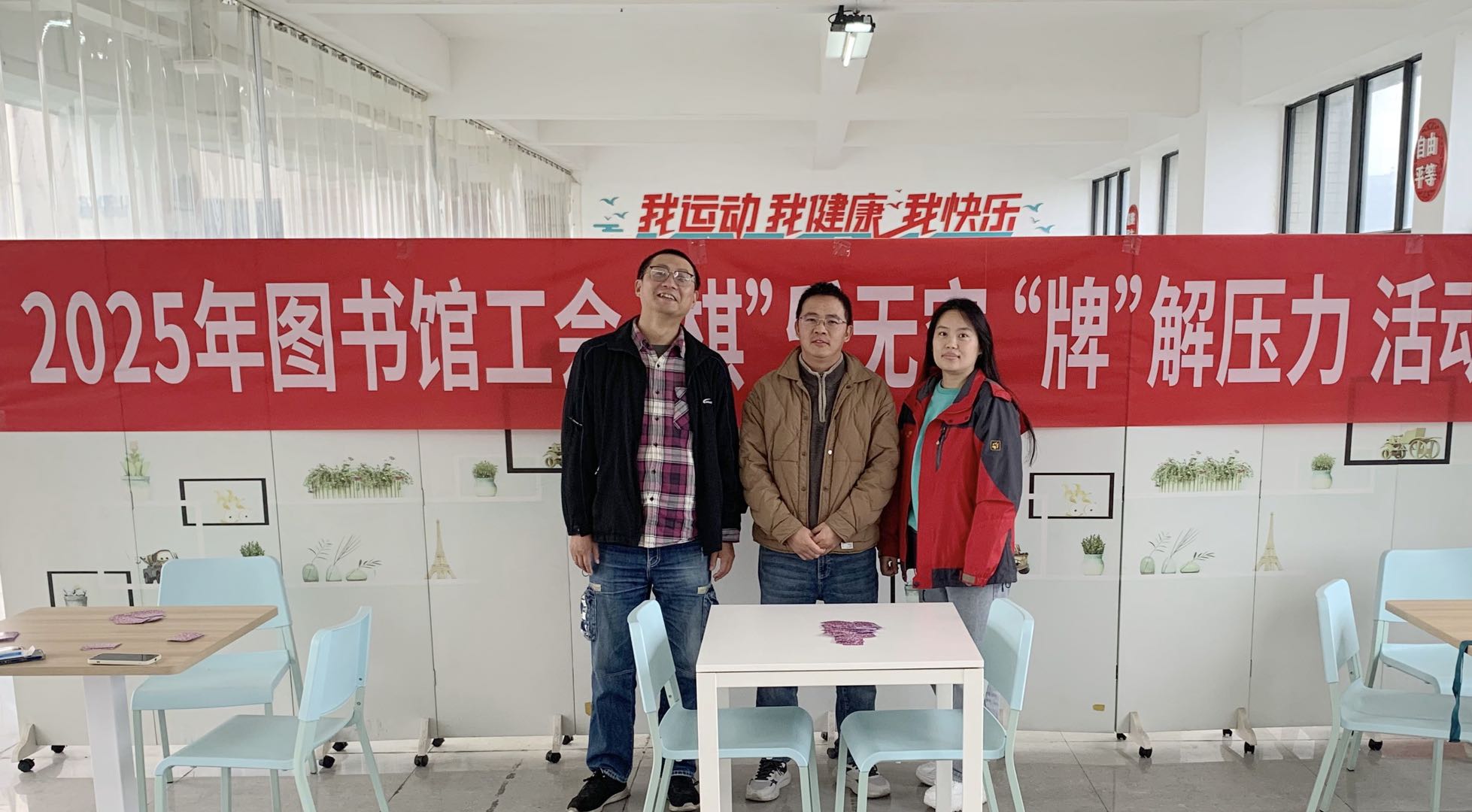 近日,图书馆工会在全馆组织开展迎校庆“棋”乐无穷 “牌”解压力比赛活动,经过激烈角逐,朱斌华、汪若兰、孔敏分别获得五子棋冠、亚、季军;汪勇、朱斌华、文婷分别获得斗地主冠、亚、季军。