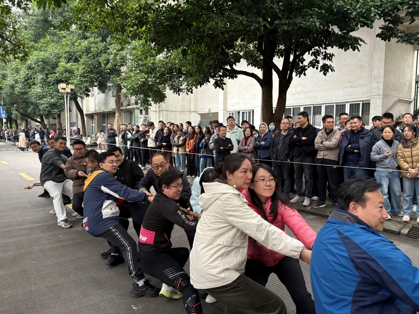特别值得称道的是拔河比赛,在该项目双倍计分的关键规则下,图书馆面临男职工人数不足的困境。女职工们挺身而出与男队员并肩作战。尽管最终未能得分,但大家齐心协力、咬牙坚持的模样,充分展现了“巾帼不让须眉”的担当。